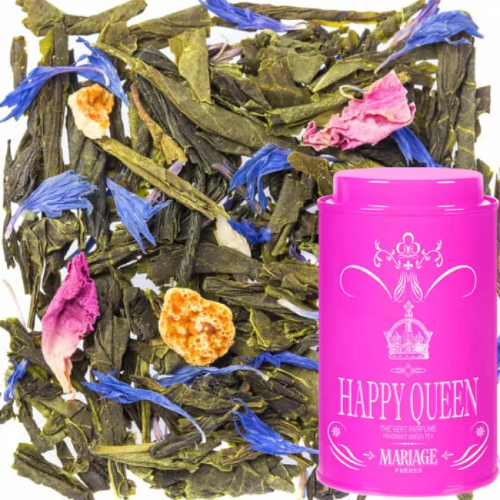 Pour la Reine, un thé vert aux agrumes, des fleurs de grenade, des écorces d’orange, un peu d’ananas confit et des pétales de pivoine. Également pour la fête des mères, célébrer une naissance, en clin d’œil à l’être aimée, à sa meilleure copine, voici un nouveau cadeau royal.