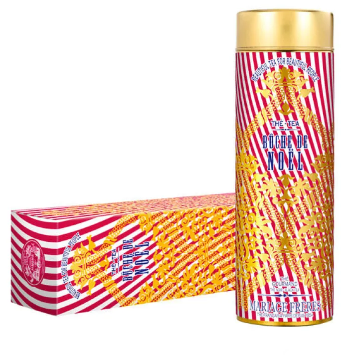 Nous nous sommes inspirés des saveurs gourmandes et festives de sa bûche de Noël, aux notes d’agrumes, de chocolat, de caramel et de fruits rouges pour créer ce fabuleux thé noir.