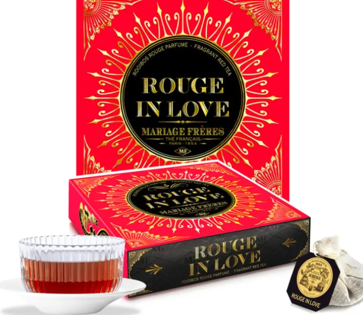 Rouge In Love® est un rooibos rouge au parfum du dessert iconique de notre maison : un confit de fraise frais et fondant sur un sablé à la vanille bourbon agrémenté de crème fouettée aux agrumes et de meringue française.