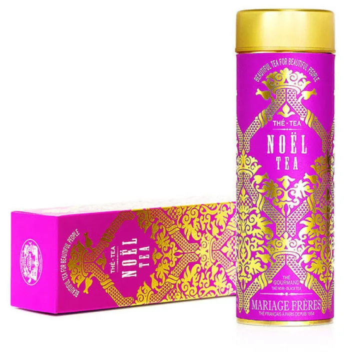 Noël Tea est un thé noir aux aiguilles d’argent, élégant et gourmand, parsemé d’étoiles dorées et irrésistiblement parfumé de mandarine, cannelle, amande, orange et vanille Bourbon.