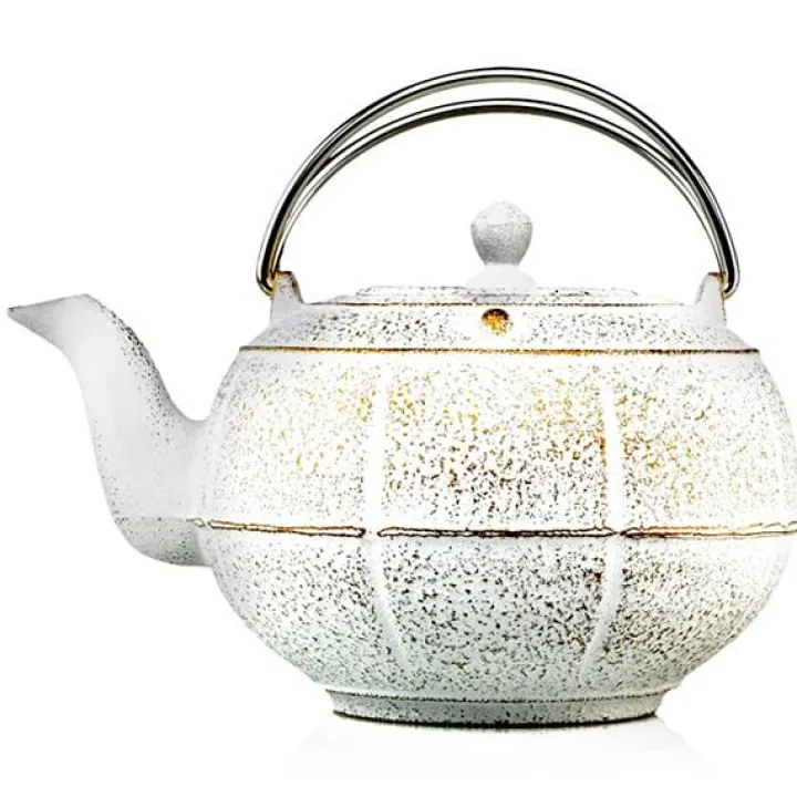 Théière en fonte blanc & dorée – 3 tasses