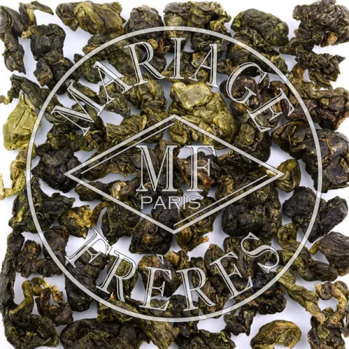 Les jeunes feuilles partiellement oxydées sont façonnées en perles de jade, et livrent une note de pignons de pin et de galanga, qui s’ouvrent une fois infusées sur un bouquet de coquelicots et de noix du brésil. Or cuivré, la liqueur dévoile des notes de fleurs bleues et de cranberries. Le final est exquis sur une note d’orangine.