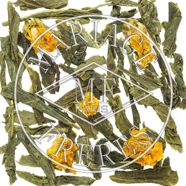 Ce sencha est agrémenté de fleurs de chrysanthème.