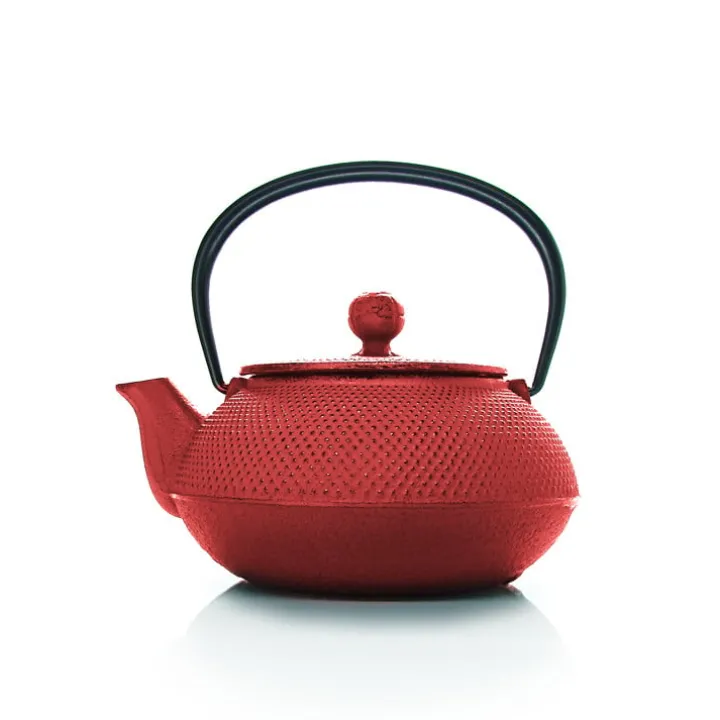 Le dessin de cette théière en fonte, réalisée artisanalement selon la tradition japonaise, en fait une pièce classique recherchée. Elle dispose d’un filtre métallique.