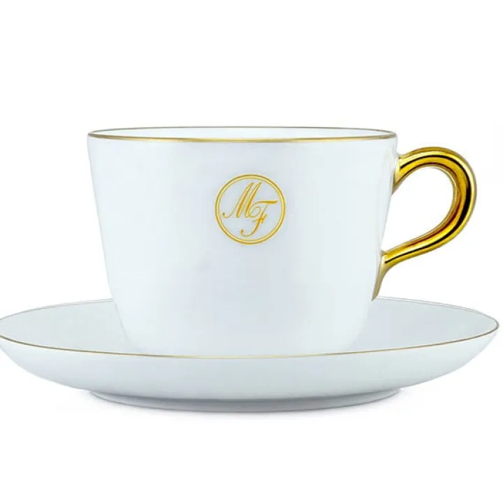 Cette tasse et sa sous tasse sont façonnés par la manufacture attitrée de l’empereur du Japon, mondialement célèbre pour la délicatesse et la blancheur inimitable de ses porcelaines.