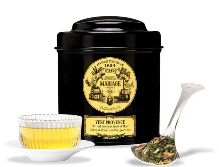 Vert Provence® restitue la magie de ce Sud ardent, en un grand thé vert au parfum fleuri, marié à de petits fruits rouges, noirs, mûrs, pour un bouquet intense qui arrondit la bouche de leurs arômes concentrés et agrémenté de lavande douce à l’arôme chaud et camphré et de pétales de rose.