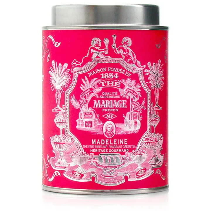 Boîte métallique contenant 100 g de thé vert parfumé.