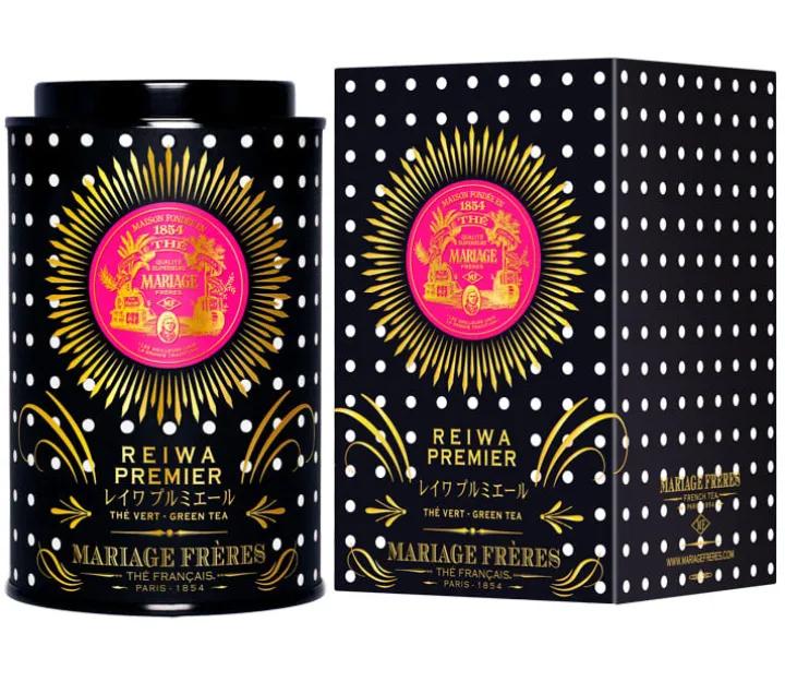 Habillé de noir égayé de pois lumineux, la boîte porte un logo flamboyant dans un soleil levant en rappel du rose élu par la Maison Impériale pour accompagner l’ère Reiwa.