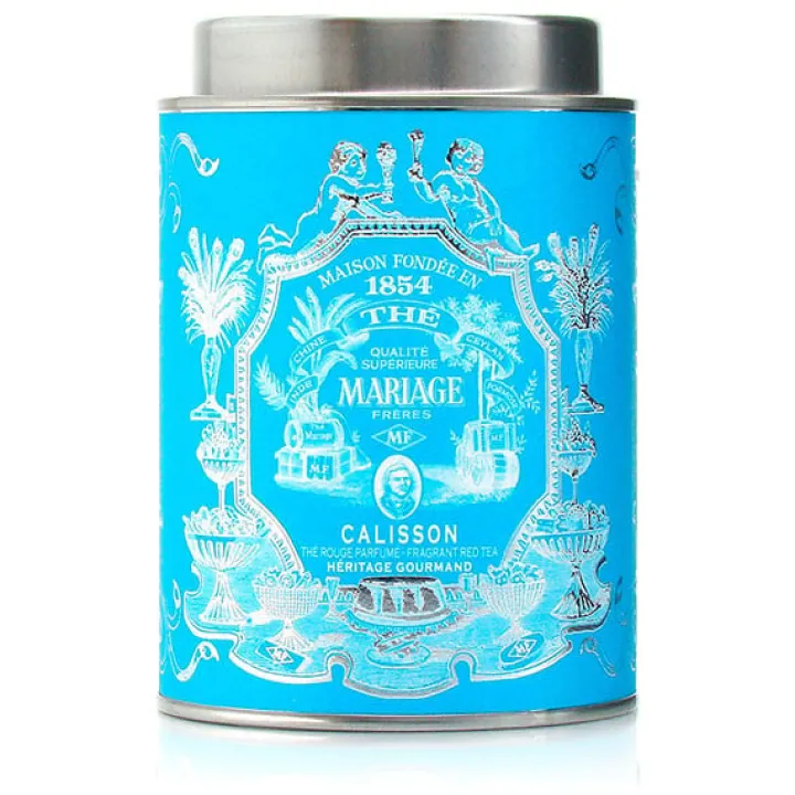 Boîte métallique contenant 100 g de rooibos rouge parfumé.