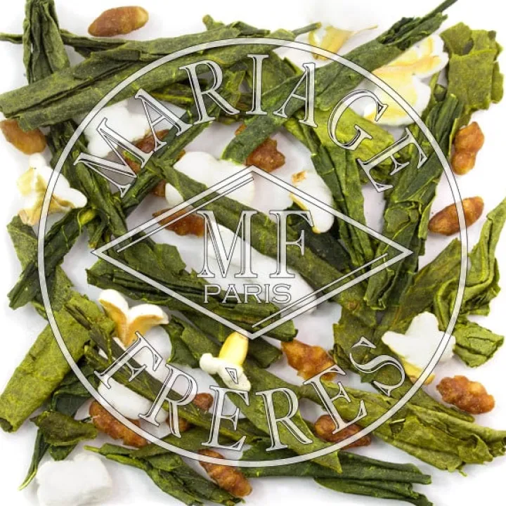 Mélange de thé vert de haute qualité avec des grains de riz soufflés.