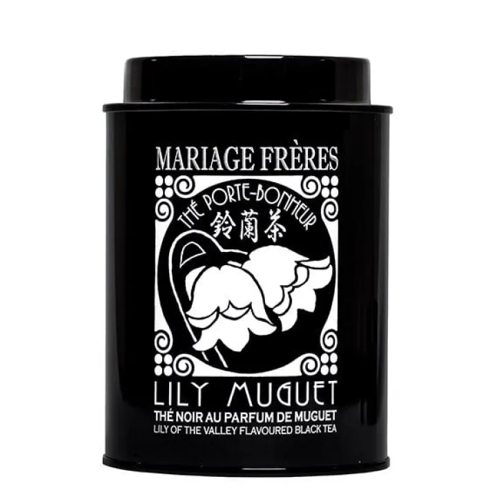 La fleur de muguet aérienne, tendre, aux inflexions satinées apporte le charme suave et doux de ses pétales encore couverts de rosée et caressés de soleil sur un bouquet de thé noir.