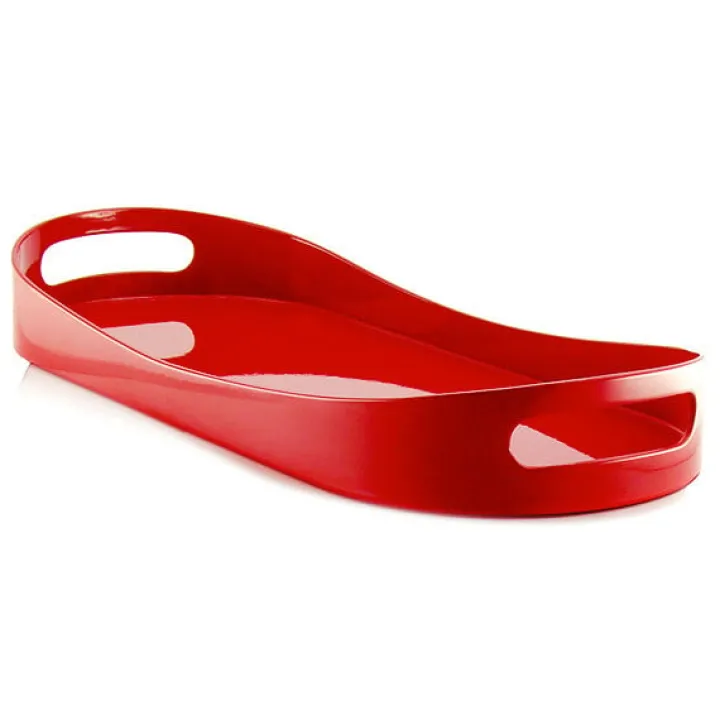 Plateau en laque rouge. Dim : 4 x 16 cm