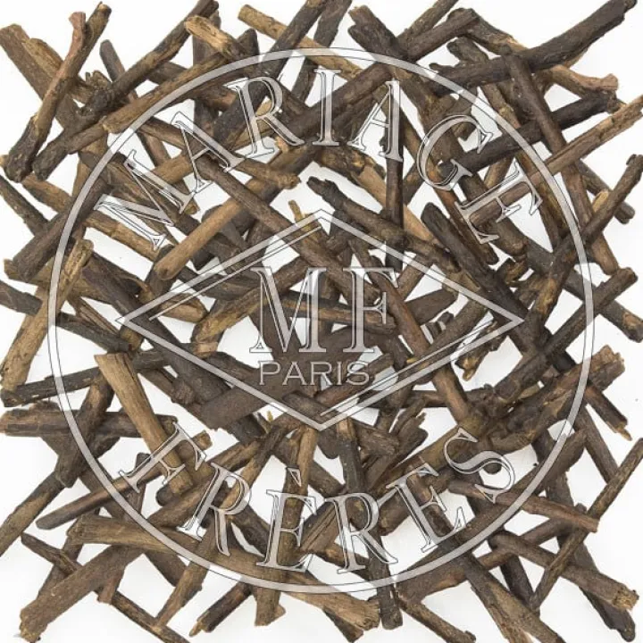 D’un bel acajou mat, les feuilles séduisent par leur parfum de cacao torréfié mêlé aux notes de bois de réglisse et de caramel roux.