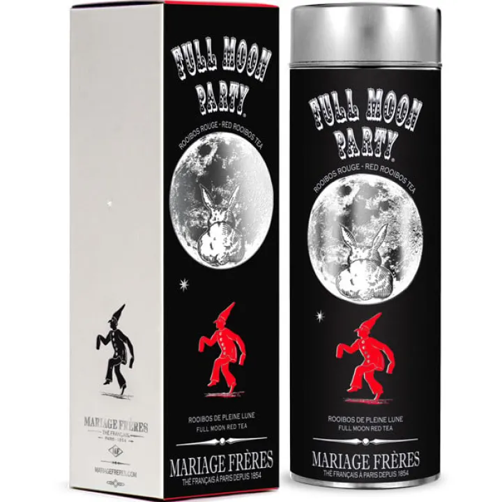 Full Moon Party a été créé pour célébrer la plus belle lune de l’année, qui illumine le ciel à la fin de l’été. Un rooibos rouge aux notes gourmandes d’amandes et de rose, réveillé par des accents d’épices douces.