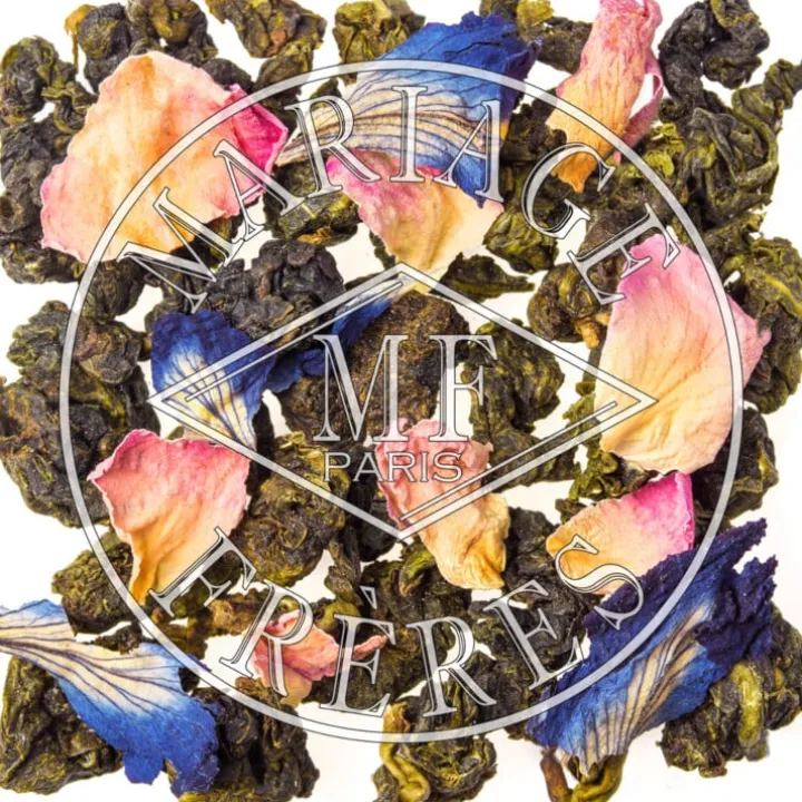 Un noble thé bleu rencontre le parfum fragile de la rose de Damas, suave et élégante. Aussi douce qu’un ruban de satin, la fragrance naturelle des pétales de rose glisse sur le palais avec une délectable souplesse.