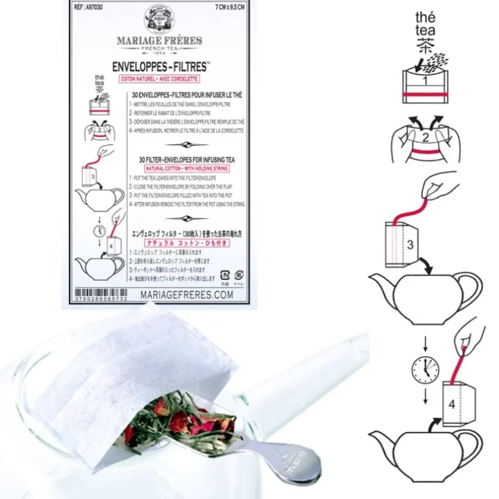Chaque enveloppe-filtre peut contenir 5 g de thé. Pochette de 30 enveloppes-filtres.