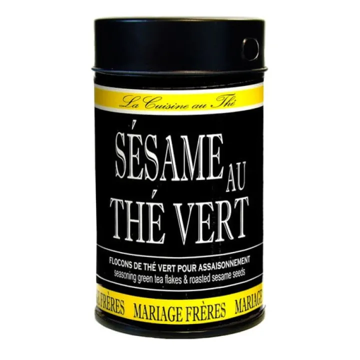 Le Sésame au thé vert est un mélange de thé sencha du Japon, de graines de sésame, de sel fin et d’algues qui parfume d’une touche originale, naturelle et savoureuse soupes, pâtes, légumes ou encore purées, sauces…