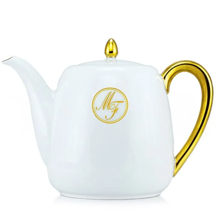 Théière en porcelaine blanc & dorée – 4 tasses