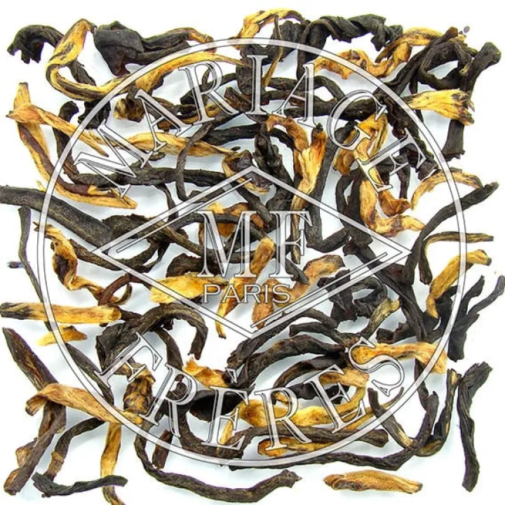 Cet assemblage original de nobles thés noirs d’Assam aux bourgeons dorés favorise l’expression de la divine bergamote qui offre à la tasse son humeur tendrement zestée. Luxueusement raffiné, conçu comme un bijou.
