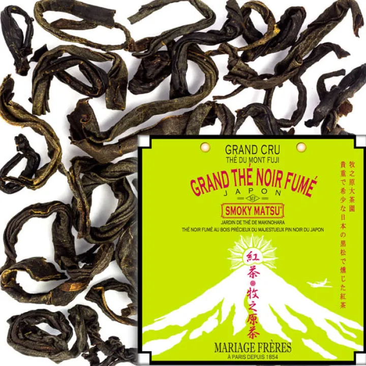 Grand cru de thé noir fumé au bois du majestueux pin noir du Japon