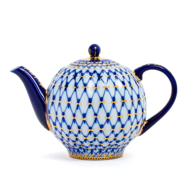 Le motif « filet de pêche » bleu et or est devenu emblématique des plus belles vaisselles de l’époque des Tzars.
