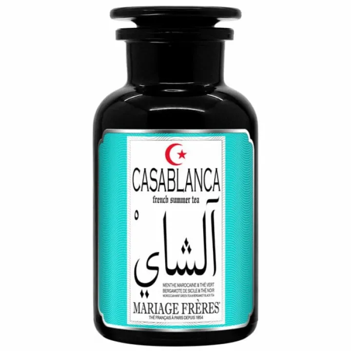 Surprenant et rafraîchissant au nom évocateur : «Casablanca», grand mariage de thé vert à la menthe marocaine et de thé parfumé à la bergamote, de saveurs à la fois fruitées et aromatiques, chaudes, piquantes et fraîches, sur la route d’un Orient rêvé.