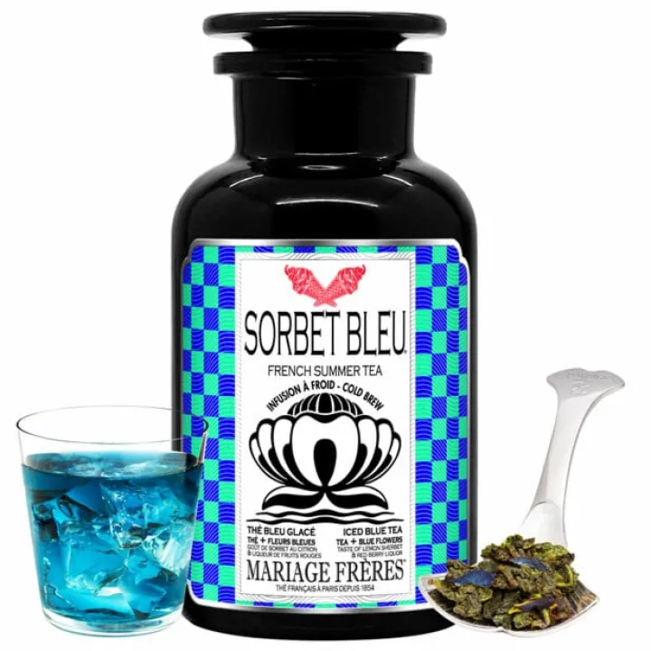 Au cœur d’un été brûlant, le thé glacé Sorbet Bleu® offre les merveilleuses sensations d’un sorbet au citron jaune et à la liqueur de fruits rouges, fondant à souhait et procurant de délicieux frissons.