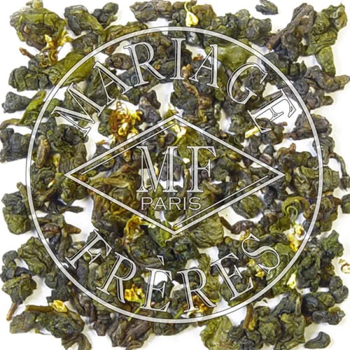 Tendres et capiteuses, de jeunes fleurs blanches sont associées à un Thé Bleu très légèrement oxydé, aux feuilles savamment travaillées, pour donner une tasse jaune pâle soyeuse aux expressions florales délicates, fraîches et souples, que viennent couronner les notes de la sève et de la douce saveur du miel.