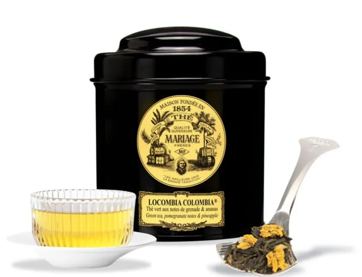 Richement parfumé aux notes gourmandes de grenades, représentées sur les armoiries de la Colombie, et parsemé de pépites d’ananas, le thé vert Locombia Colombia est fruité et souriant, à l’image de ce pays.