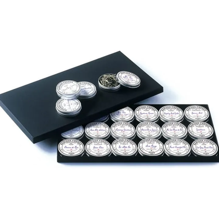 En voyage au bout du monde pour y dénicher les meilleurs crus de thé, ou en visite chez ses prestigieux clients pour leur faire découvrir ses joyaux, Henri Mariage emportait toujours avec lui un de ses magnifiques coffrets de dégustation – dont un exemplaire est exposé dans le Musée du Thé de la Maison historique, au 30 rue du Bourg-Tibourg à Paris dans le Marais.