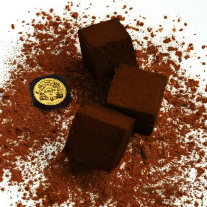 Les notes fruitées du thé noir Marco Polo® parfument généreusement cette guimauve fraîche au chocolat noir.
