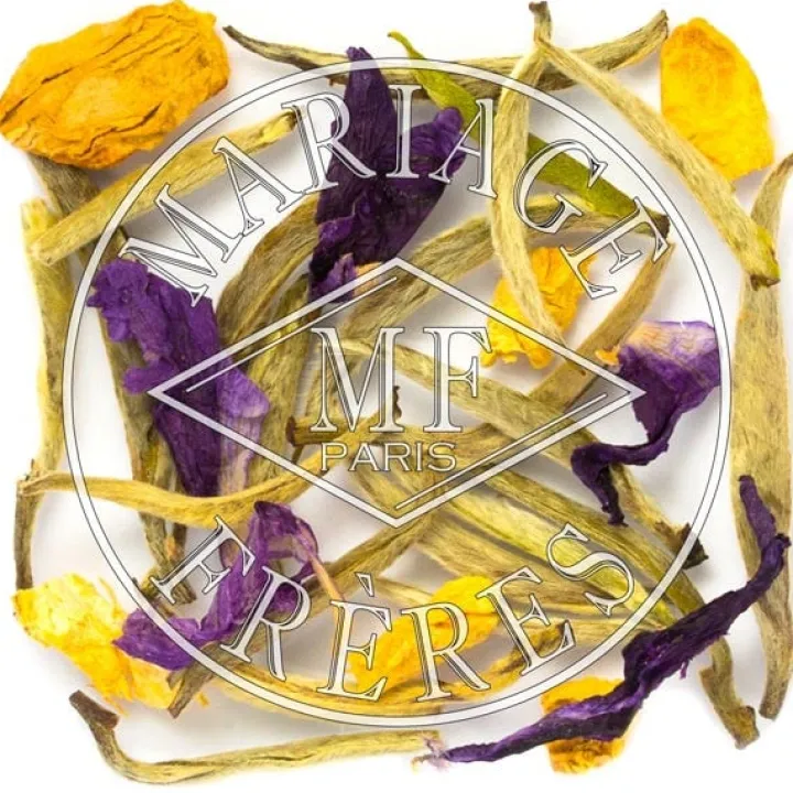 Rappel des pavillons chinois de thé, ce grand thé blanc Yin Zhen constitué de bourgeons jade à duvet argenté est rehaussé d’épices douces et parsemé de fleurs de mauve. Il laisse en palais des fragrances complices à la fois fraîches et chaudes.